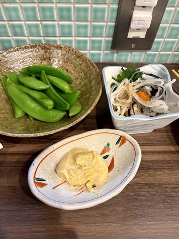まみです🐱締めのお食事続き♪菊芋、平鯛(へだい)、菜の花の炊…